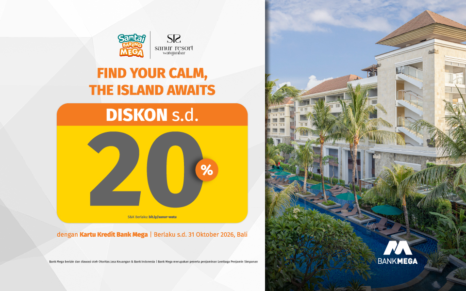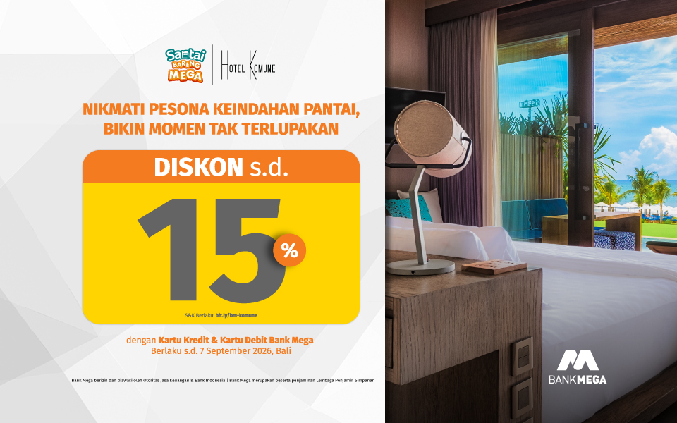 Agar liburan semakin hemat, manfaatkan promo menarik dari Kartu Kredit Bank Mega di banyak hotel pilihan. Dengan perencanaan sederhana dan dukungan layanan Bank Mega, kamu bisa menikmati liburan panjang tanpa khawatir soal biaya.