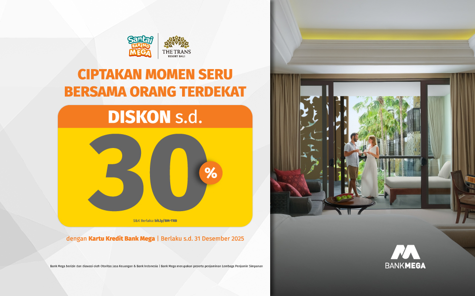 Promo dari Bank Mega membuat menginap di Trans Resort jadi lebih terjangkau. Kamu bisa menikmati fasilitas mewah dengan harga yang lebih ramah keluarga.