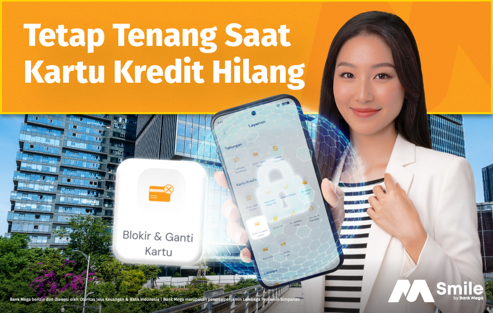 Proses penggantian kartu baru yang disetujui akan langsung dikirimkan ke nasabah sesuai dengan alamat pengiriman terdaftar. Jika kamu ingin tahu lebih banyak tentang produk dan layanan dari Bank Mega, kamu bisa kunjungi website kami, hubungi layanan pelanggan kami di 08041500010, atau bisa juga download aplikasi M-Smile yang tersedia di App Store dan Play Store untuk daftar dan apply Tabungan Bank Mega dan Kartu Kredit Bank Mega sekarang juga! Kamu juga bisa apply kartu kredit hanya 5 menit langsung di-approve lewat sini. Untuk data dan referensi terbaru, silakan kunjungi bankmega.com.