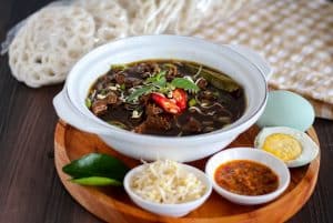 Siapa yang tak kenal rawon? Sup daging sapi berkuah hitam ini menggunakan kluwek sebagai bumbu utama, menciptakan cita rasa yang dalam, gurih, dan sedikit pahit yang khas. Biasanya disajikan dengan tauge pendek, telur asin, nasi panas, dan sambal.