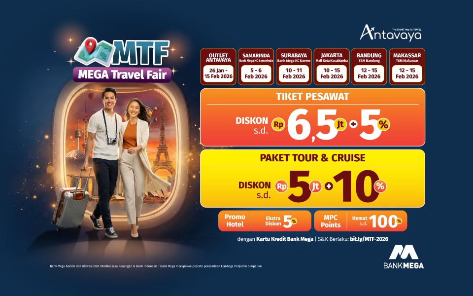 *Extra Benefit: Tambahan Diskon 5% untuk pemegang kartu MegaFirst Infinite & Mega Travel Card.