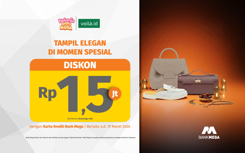 Voila menghadirkan promo menarik untuk pengguna kartu Bank Mega. Promo ini berlaku untuk belanja langsung di toko maupun secara online. Dengan penawaran ini, kamu bisa belanja lebih mudah dan tetap hemat.