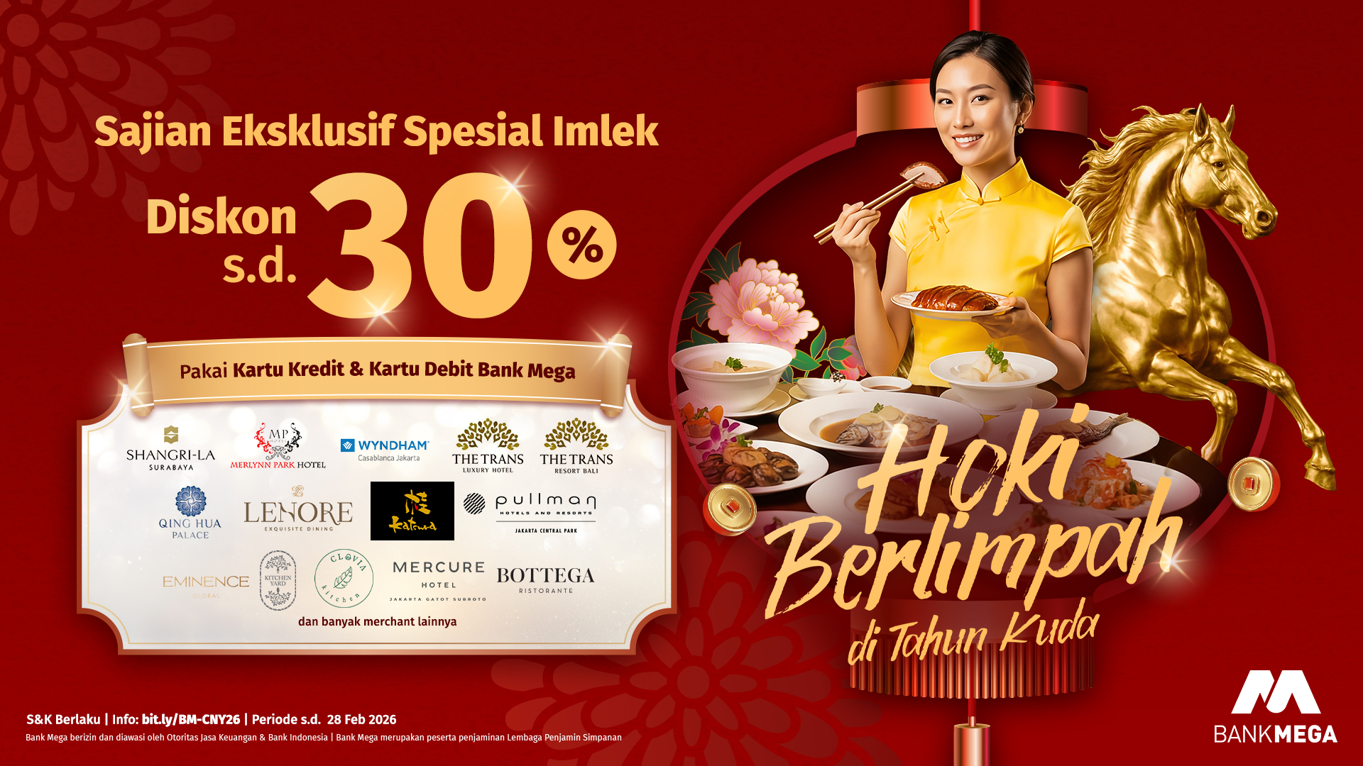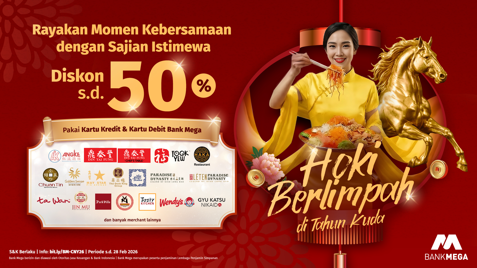 Untuk promo lengkapnya disini: Promo Dining Imlek 2026 dengan Kartu Bank Mega