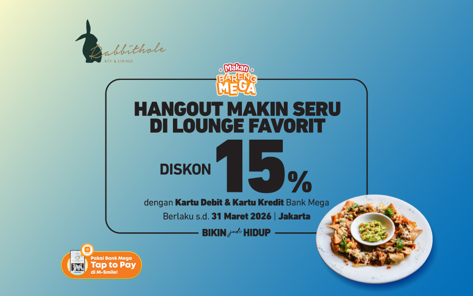 - Tidak dapat digabungkan dengan promo lainnya.Berlaku untuk Kartu Debit dan Kartu Kredit Bank Mega kecuali Mega Silver Card, Mega Groserindo Card, Mega Wholesale Card, Mega Barca Mega FIFA Card, Mega IA-ITB Card, Co-Brand Bank Sulteng Card dan Bank Riau Card.
