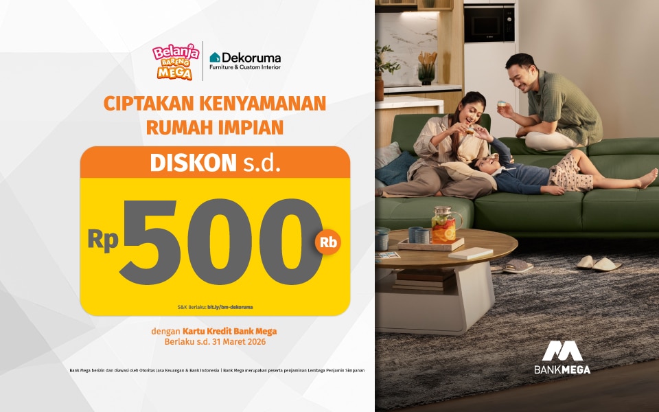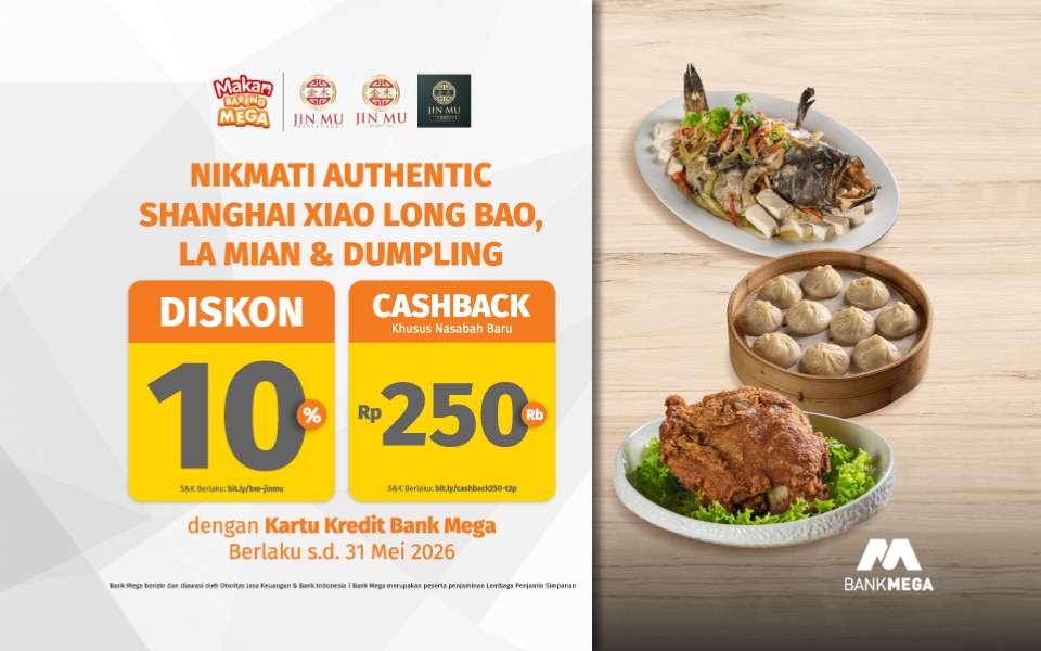- Bank Mega berhak untuk memperpanjang atau memberhentikan program, serta mengubah syarat dan ketentuan promo tanpa pemberitahuan sebelumnya.