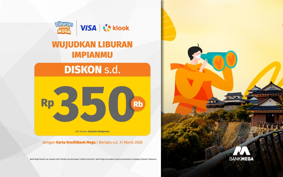- Berlaku untuk transaksi menggunakan Kartu Kredit Bank Mega
