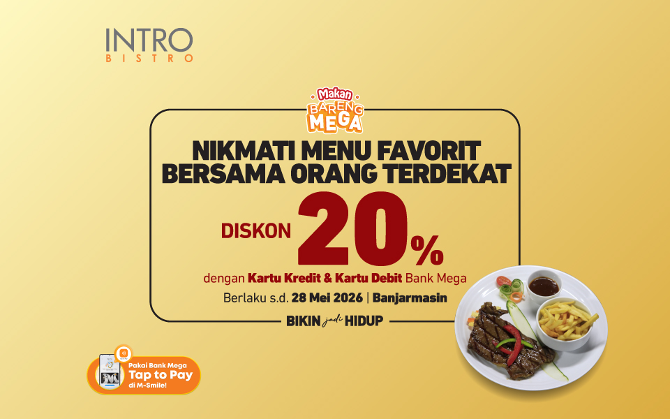 - Bank Mega berhak untuk memperpanjang atau memberhentikan program, serta mengubah syarat dan ketentuan promo tanpa pemberitahuan sebelumnya.