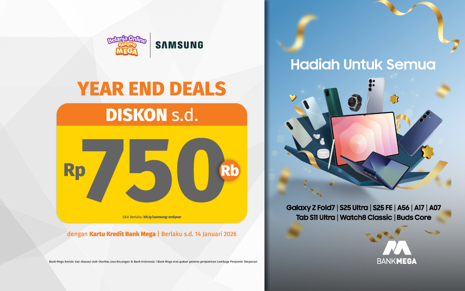 Promo Samsung End Year dari Bank Mega hadir untuk bantu kebutuhan gadget di momen akhir tahun. Tidak hanya potong harga, promo ini juga memberi cara bayar yang lebih mudah. Di tengah banyak kebutuhan akhir tahun, promo ini bisa jadi solusi agar belanja tetap terkontrol. Kamu bisa pilih produk sesuai kebutuhan dan atur cara bayar yang pas dengan kondisi dana.