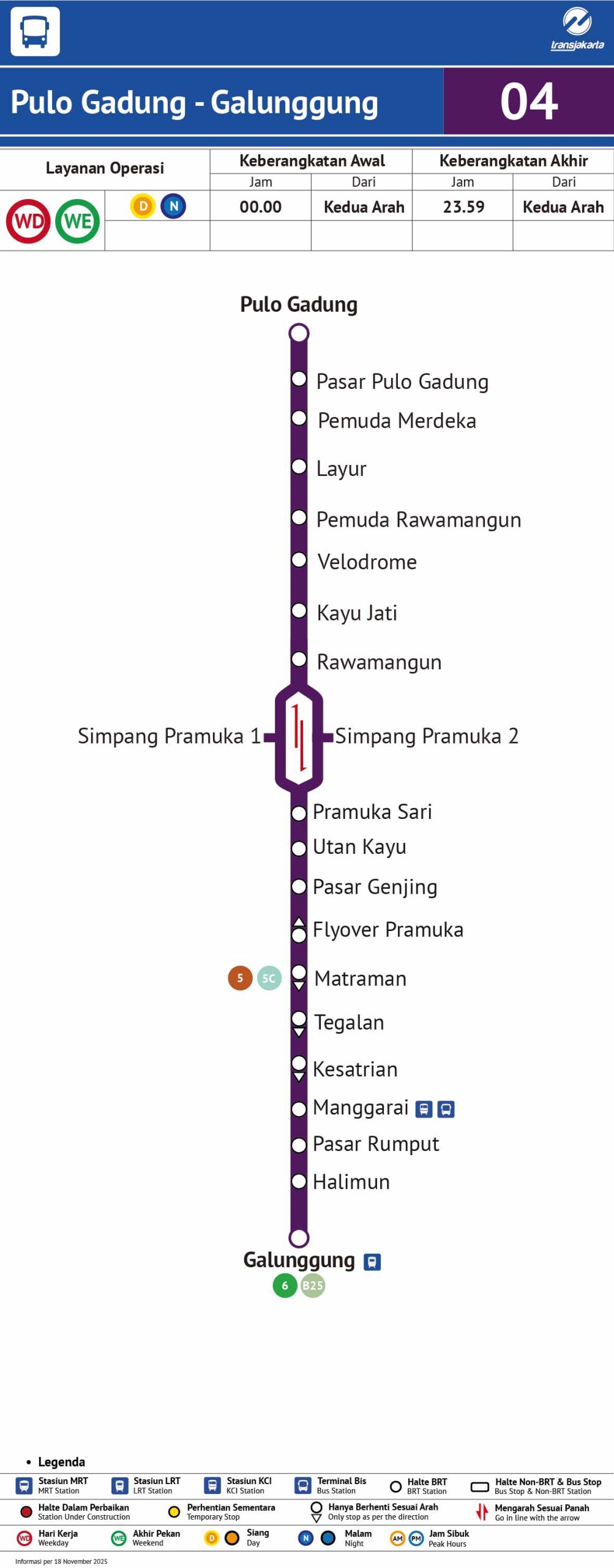 | 1 | Pulo Gadung | Titik awal/akhir di Jakarta Timur. |